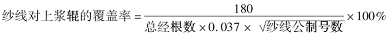 一般情况下50%~60%的纱线覆盖率在浆纱过程中属于正常状态,生产比较容易。而低于40%,且高于70%的覆盖率对经纱上浆影响比较大,要采取相应的措施,调整浆纱工艺。特别覆盖率较大品种,上浆难度大,即要加大压浆力,调整浆液浓度,并把侧压加大压力,调查主烘、预烘温度,确保车速、压浆力、回潮控制在工艺范围内。